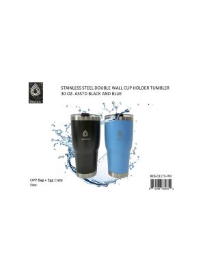 - STAINLESS STEEL DOUBLE WALL CUP HOLDER TUMBLER INSULATED 30 OZ. - BLACK AND BLUESKU - MAXX-BEB-01173-INVUPC No. - 810088882852Location - RACK 58