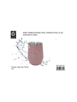 - WINE TUMBLER DOUBLE WALL STAINLESS STEEL INSULATED 15 OZ. - SEMI MATTE CORALSKU - MAXX-BEB-01023-INVUPC No. - 810088881350Location - BAY 50C