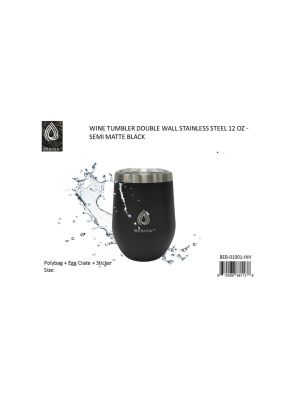 - WINE TUMBLER DOUBLE WALL STAINLESS STEEL INSULATED 12 0Z. - SEMI MATTE BLACKSKU - MAXX-BEB-01001-INVUPC No. - 810088881138Location - RACK 69