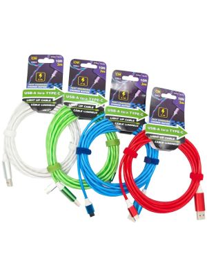 - 10 FT. USB TO TYPE C LIGHT UP CABLESKU - CHAT-TYPEC-10LEDUPC No. - 7 74471 45017 5Location - BAY 43B