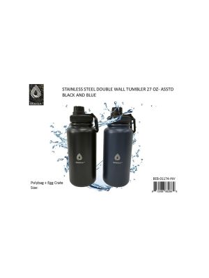 - STAINLESS STEEL DOUBLE WALL TUMBLER INSULATED 27 0Z. - BLACK AND BLUESKU - MAXX-BEB-01174-INVUPC No. - 810088882869Location - BAY 51D