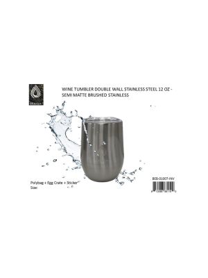 - WINE TUMBLER DOUBLE WALL STAINLESS STEEL INSULATED 12 0Z. - SEMI MATTE BRUSHED STAINLESSSKU - MAXX-BEB-01007UPC No. - 810088881190Location - BAY 50B