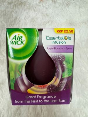 - AIR WICK CANDLE PURPLE BLACKBERRY SPICE 105 G.SKU - CENT-HB-28125UPC No. - 5011417563847Location - N/AAdd to Wish ListAdd to CompareAvailability - Out of StockPlease click to add to wishlistPieces in cart - 0