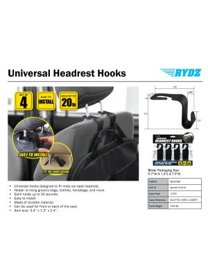 - CAR SEAT HEADREST HOOK - SET OF 4SKU - MAXX-NV-07987UPC No. - 841437153729Location - BACK WALLAdd to Wish ListAdd to CompareAvailability - Out of StockPlease click to add to wishlistPieces in cart - 0