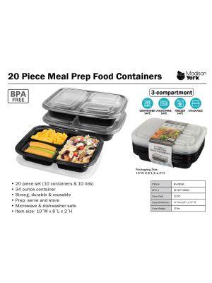 - MEAL PREP 20 PIECE ROUND BLACK - 3 SECTIONSSKU - MAXX-NV-06786UPC No. - 841437134575Location - RACK 66Add to Wish ListAdd to CompareAvailability - Out of StockPlease click to add to wishlistPieces in cart - 0