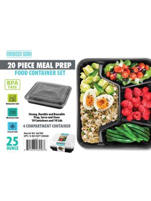 - MEAL PREP 20 PIECE BLACK - 4 SECTIONSSKU - MAXX-NV-06785UPC No. - 841437134568Location - ROOM 3Add to Wish ListAdd to CompareAvailability - Out of StockPlease click to add to wishlistPieces in cart - 0