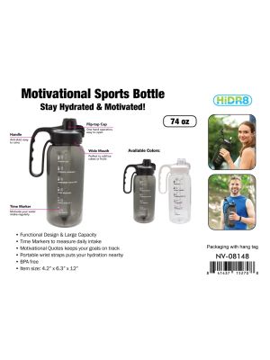- MOTIVATIONAL WATER BOTTLE - 74 OZ. - BLACK/CLEARSKU - MAXX-NV-08148UPC No. - 841437152708Location - RACK 56Add to Wish ListAdd to CompareAvailability - Out of StockPlease click to add to wishlistPieces in cart - 0