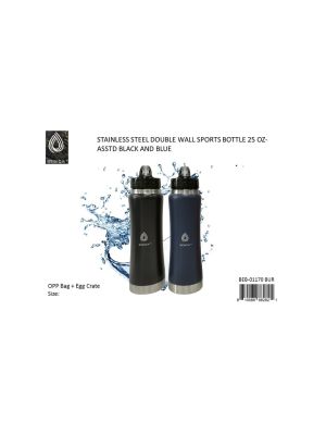 - STAINLESS STEEL DOUBLE WALL SPORTS BOTTLE 25 OZ. - BLACK AND BLUE prepriced $9.99SKU - MAXX-BEB-01170-BURUPC No. - 810088882821Location - FRAdd to Wish ListAdd to CompareAvailability - Out of StockPlease click to add to wishlistPieces in cart - 0
