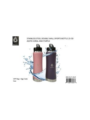 - STAINLESS STEEL DOUBLE WALL SPORTS BOTTLE 25 0Z. PREPRICED $9.99 US - CORAL AND PURPLESKU - MAXX-BEB-01171-BURUPC No. - 810088882838Location - N/AAdd to Wish ListAdd to CompareAvailability - Out of StockPlease click to add to wishlistPieces in cart - 0