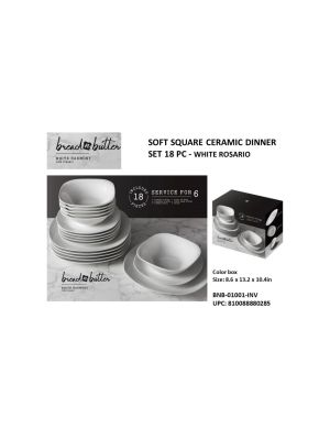 - SOFT SQUARE CERAMIC DINNER SET 18 PC. - WHITE ROSARIOSKU - MAXX-BNB-01001-INVUPC No. - 810088880285Location - 36Add to Wish ListAdd to CompareAvailability - Out of StockPlease click to add to wishlistPieces in cart - 0