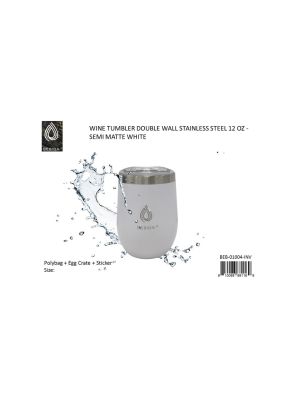 - WINE TUMBLER DOUBLE WALL STAINLESS STEEL INSULATED 12 OZ. - SEMI MATTE WHITESKU - MAXX-BEB-01004-INVUPC No. - 810088881169Location - BAY 50BAdd to Wish ListAdd to CompareAvailability - Out of StockPlease click to add to wishlistPieces in cart - 0