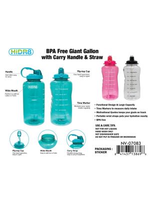 - GIANT GALLON WITH CARRY HANDLE AND STRAW ASSORTED COLORSSKU - MAXX-NV-07083UPC No. - 841437138696Location - ROOM #3Add to Wish ListAdd to CompareAvailability - Out of StockPlease click to add to wishlistPieces in cart - 0