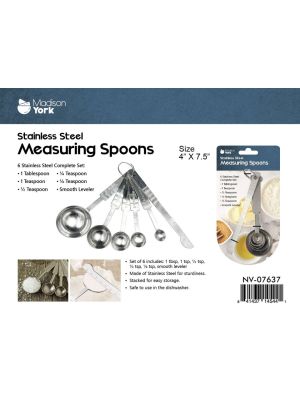 - STAINLESS STEEL MEASURING SPOONSSKU - MAXX-NV-07637UPC No. - 841437145441Location - BIN 25Add to Wish ListAdd to CompareAvailability - Out of StockPlease click to add to wishlistPieces in cart - 0