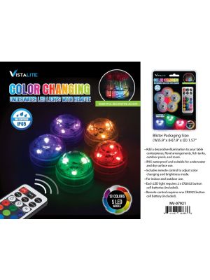 - COLOR CHANGING UNDERWATER LIGHTS W/REMOTE - SET OF 5SKU - MAXX-NV-07921UPC No. - 841437148336Location - BAY 23Add to Wish ListAdd to CompareAvailability - Out of StockPlease click to add to wishlistPieces in cart - 0