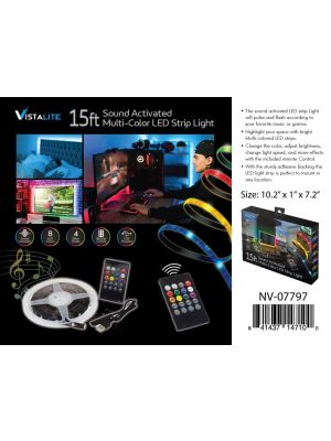- MULTI COLOR LED STRIP LIGHT - SOUND ACTIVATED - 15 FT.SKU - MAXX-NV-07797UPC No. - 841437147100Location - BAY 33Add to Wish ListAdd to CompareAvailability - Out of StockPlease click to add to wishlistPieces in cart - 0