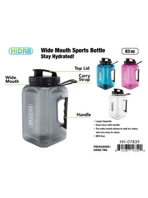 - WIDE MOUTH SPORTS WATER BOTTLE - ASSORTED COLORS - 83 OZ.SKU - MAXX-NV-07839UPC No. - 841437147520Location - RACK 56Add to Wish ListAdd to CompareAvailability - Out of StockPlease click to add to wishlistPieces in cart - 0