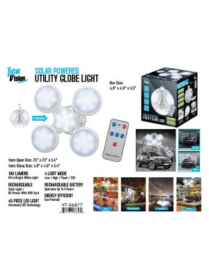 - SOLAR POWERED UTILITY GARAGE LIGHT WITH REMOTE (ROUND)SKU - MAXX-VT-06877UPC No. - 841437136562Location - BAY 24Add to Wish ListAdd to CompareAvailability - Out of StockPlease click to add to wishlistPieces in cart - 0