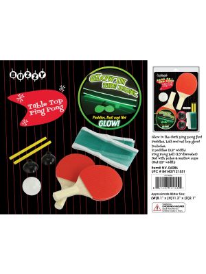 - GLOW IN THE DARK TABLE TOP MINI PING PONGSKU - MAXX-NV-06086UPC No. - 841437121551Location - BAY 26Add to Wish ListAdd to CompareAvailability - Out of StockPlease click to add to wishlistPieces in cart - 0