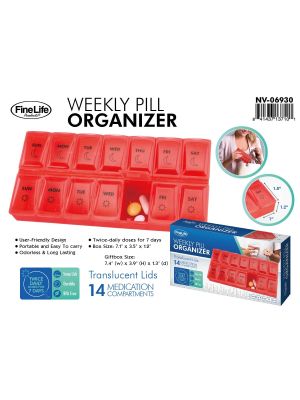 - PILL ORGANIZER - WEEKLYSKU - MAXX-NV-06930UPC No. - 841437137101Location - BAY 28Add to Wish ListAdd to CompareAvailability - Out of StockPlease click to add to wishlistPieces in cart - 0