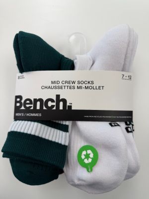 - BENCH MENS MID CREW SOCKS - 8 PK. ASST. - SZ 7-12SKU - SGW-BNMH022UPC No. - 629075329719Location - N/A