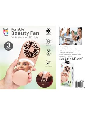- PORTABLE BEAUTY FAN W/ MIRROR AND LED - PEACHSKU - MAXX-SP-04766UPC No. - 841437150476Location - BAY 54C