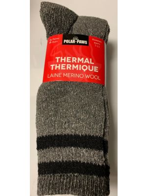 - POLAR PAWS MENS MERINO WOOL THERMAL SOCKS 2 PK.- BLACK/GREYSKU - SAB-685599UPC No. - 836349707603Location - BAY 37